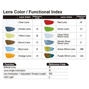Clear, Smoke, Clear Silver, Smoke Silver, Color Mirror |